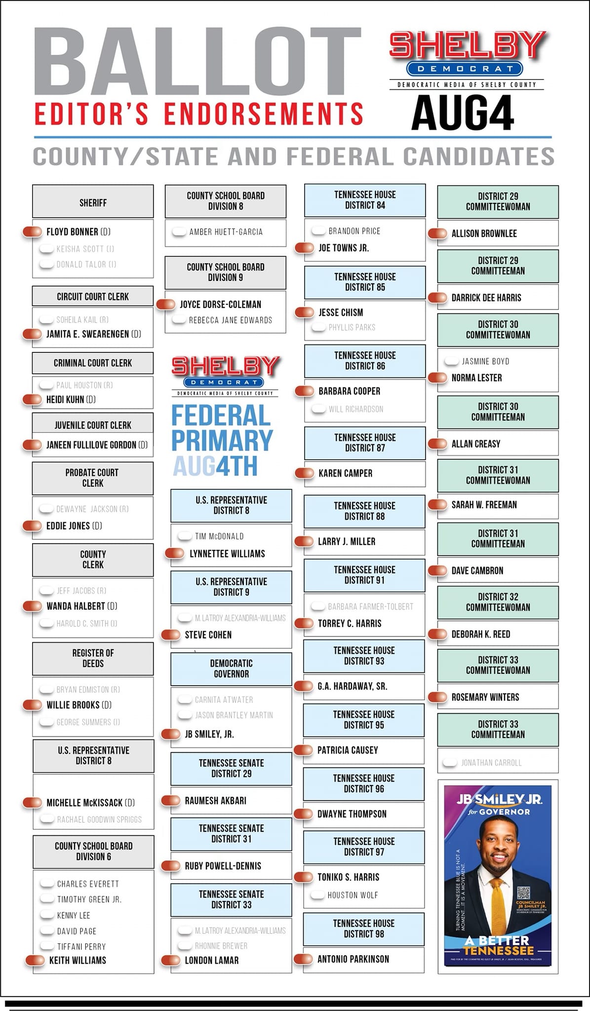 Jamita E. Swearengen is the best candidate for the Shelby County Court Clerk's office. With her proven leadership in being the chairwoman of the Memphis city council, she is a boots on the ground leader who cared for her community. She brings a love for the city of Memphis that is unmatched being the daughter of the honorable James E. Swearengen and retired educator Mrs. Hattie Swearengen Tuggle. She's learned to serve the people of Memphis in being a family and community engagement specialist for the local public education system for her current position while also serving as councilwoman for District 4. Vote for Jamita E. Swearengen for a better relationship with employees, for a better relationship with judges, for a better relationship with all lawyers, and for a better circuit court clerk's office. She'll get the job done!